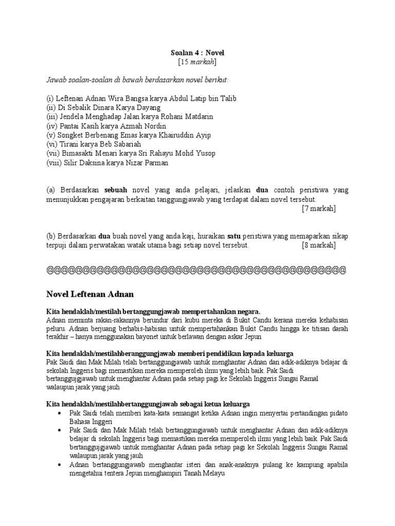Contoh Jawapan Soalan Novel Bm Tingkatan 4